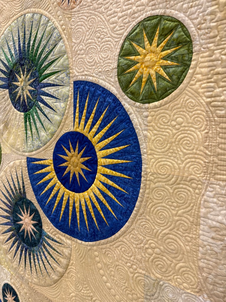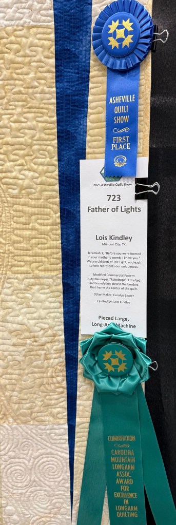 Father of Lights: Lois Kindley of Missouri City, TX was awarded the Ribbon for Excellence in Longarm Quilting, Combination (Computerized and Hand-Guided)