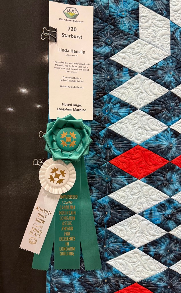 Starburst: Linda Hanslip of Lexington, SC was awarded the Ribbon for Excellence in Longarm Quilting, Computerized