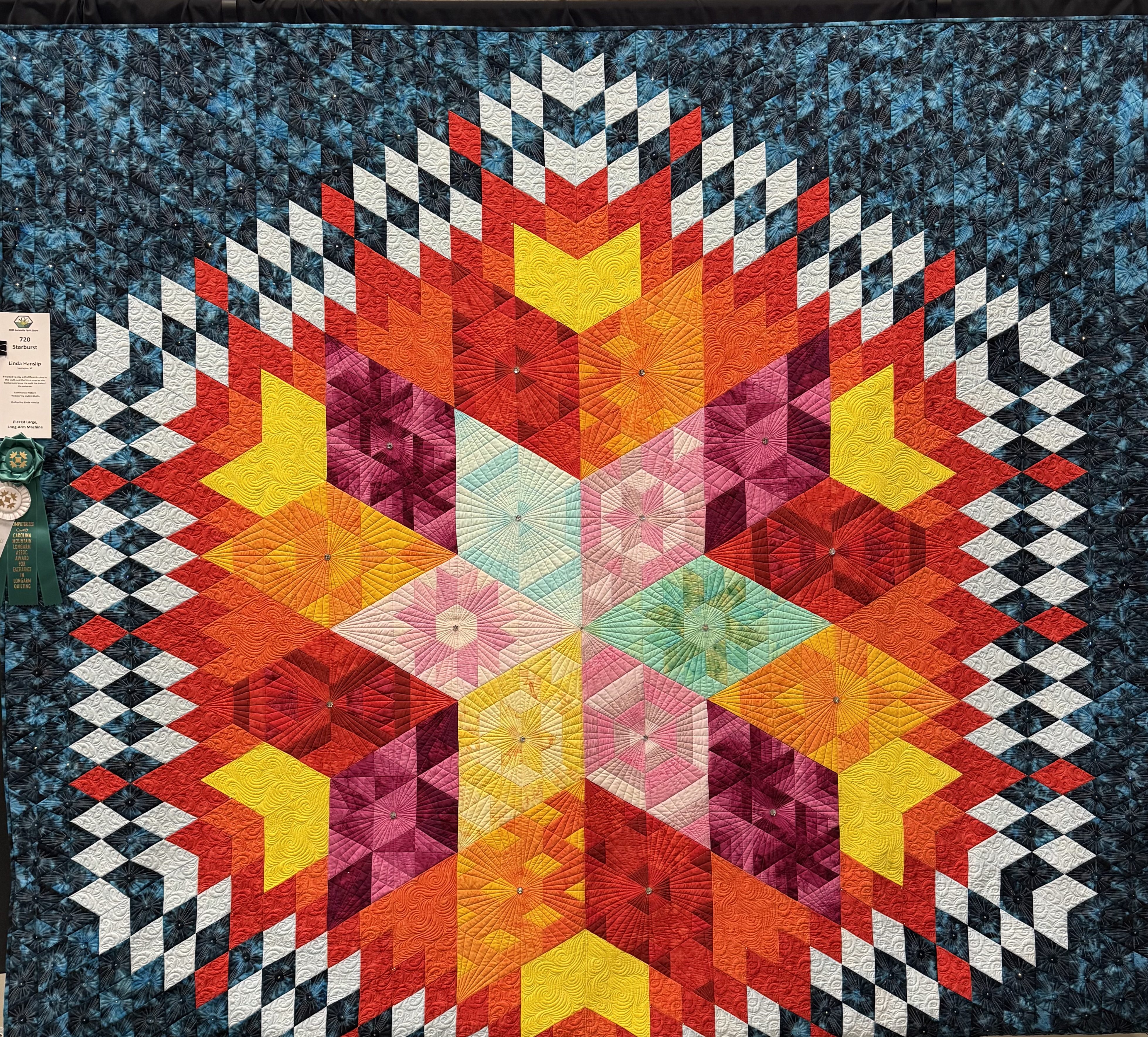Starburst: Linda Hanslip of Lexington, SC was awarded the Ribbon for Excellence in Longarm Quilting, Computerized