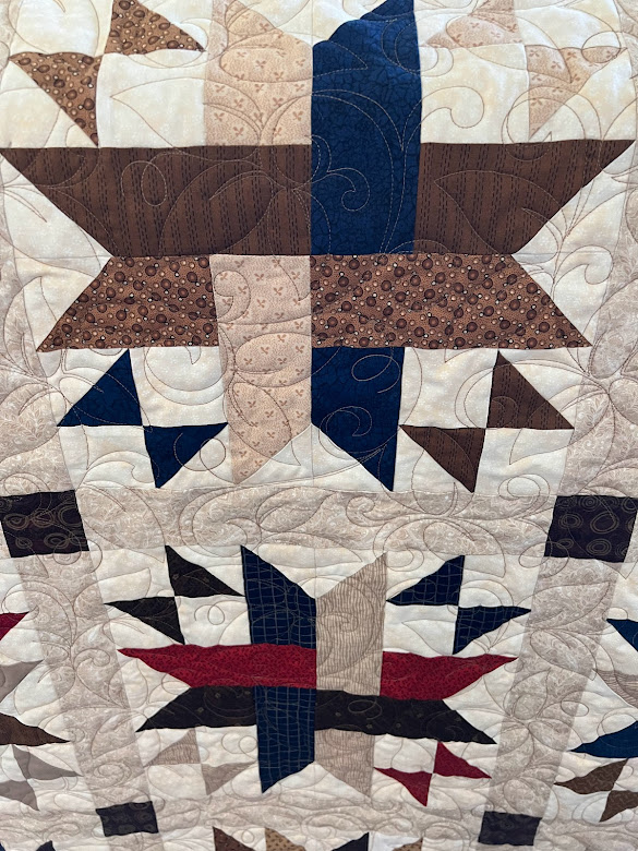 I have an APQS Lucey with IntelliQuilter, which has many designs. Together, we can choose a design pattern to compliment your piecing from simple and modern to ornate and traditional.